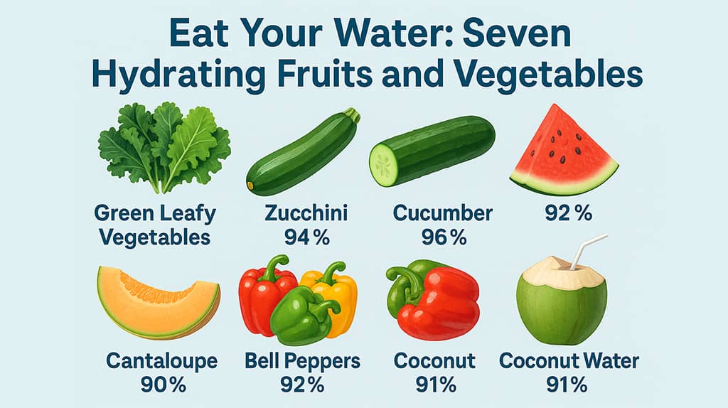 Now for the exciting part: how you can **hydrate without water** by eating water-rich fruits and vegetables. These foods contain structured water, minerals, vitamins, and other nutrients that nourish your body deeply. Here are seven of the best choices to add to your diet: